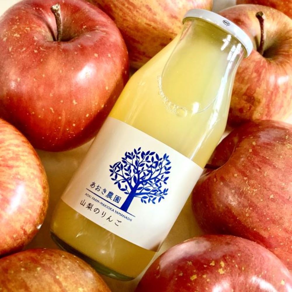 山梨県産のふじりんごのみを搾った100%ストレートジュースを詰め合わせた飲みきりサイズの小瓶のセット。