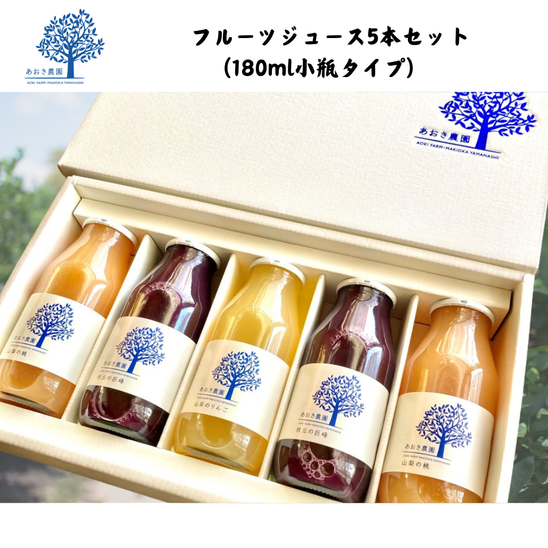 【山梨】あおき農園 山梨のジュース5種セット (180ml小瓶タイプ)