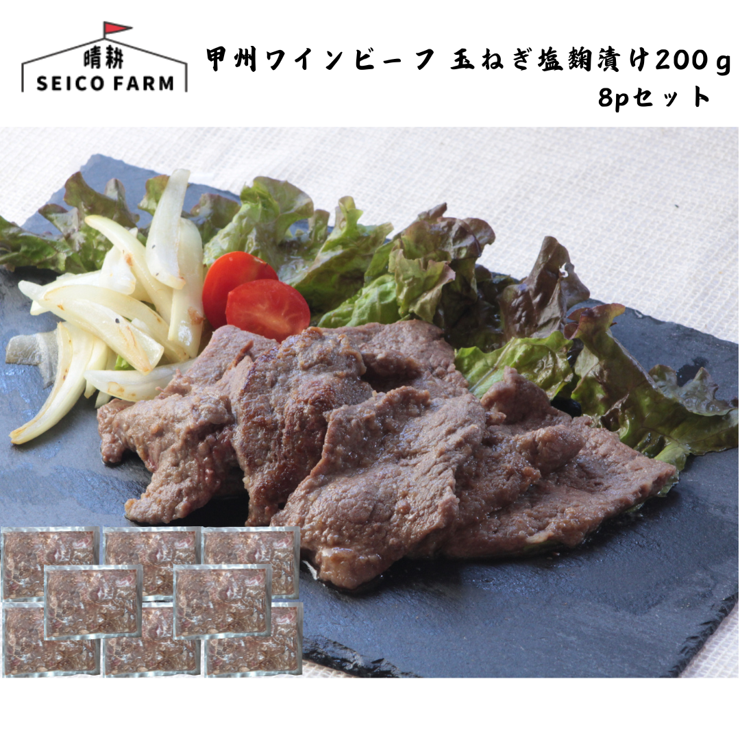【山梨】晴耕ファーム 甲州ワインビーフ 玉ねぎ塩麴漬け200g 8pセット