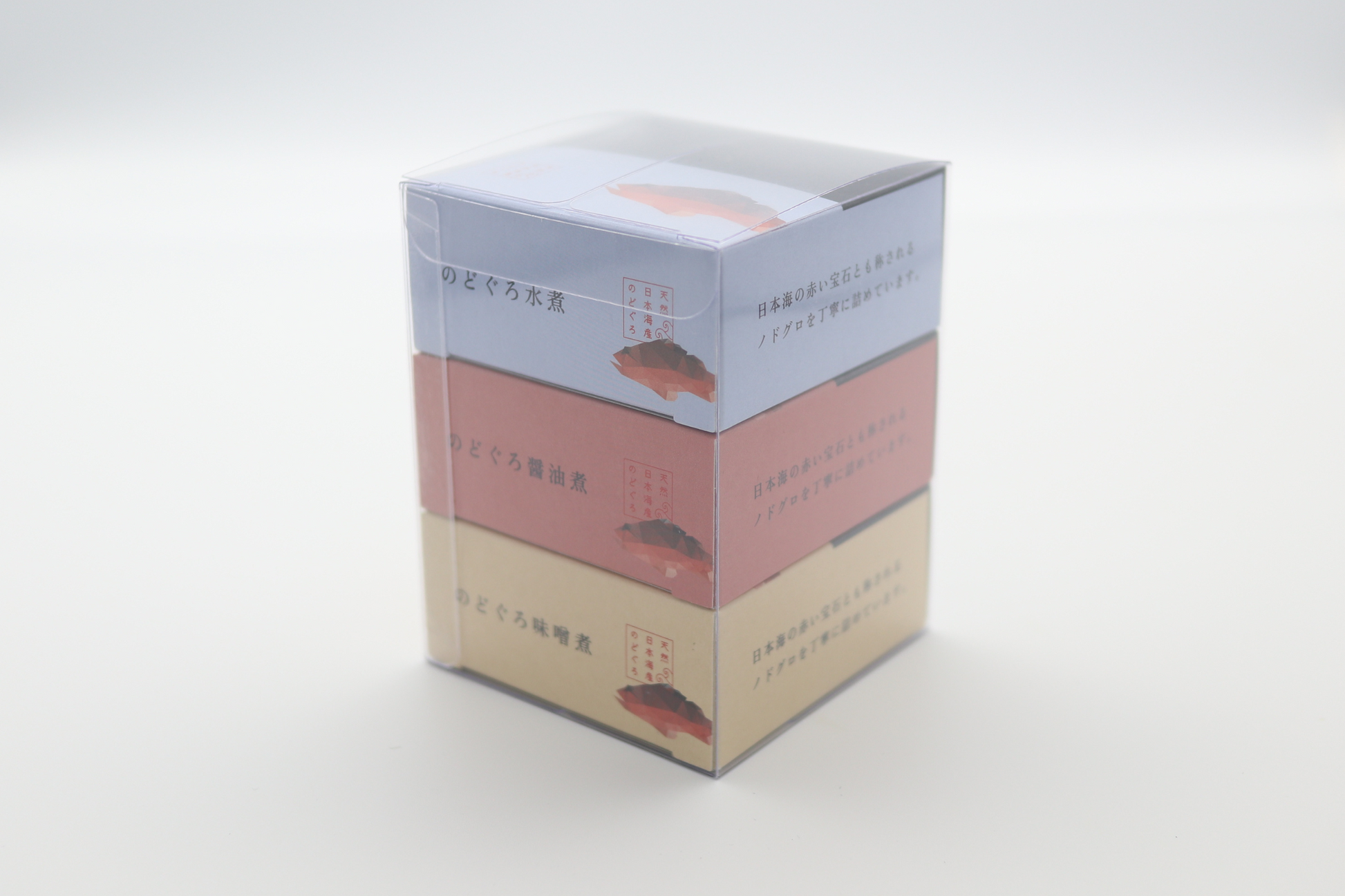 高級魚ノドグロをご家庭でも手軽に味わえる缶詰にしました。一人でも食べきれるちょうどよい内容量になっています。可愛らしいノドグロが描かれた箱入りなので手土産にも喜ばれます。定番の水煮、お酒に合う醤油煮、白ご飯に合う味噌煮、3種類の味付けです。