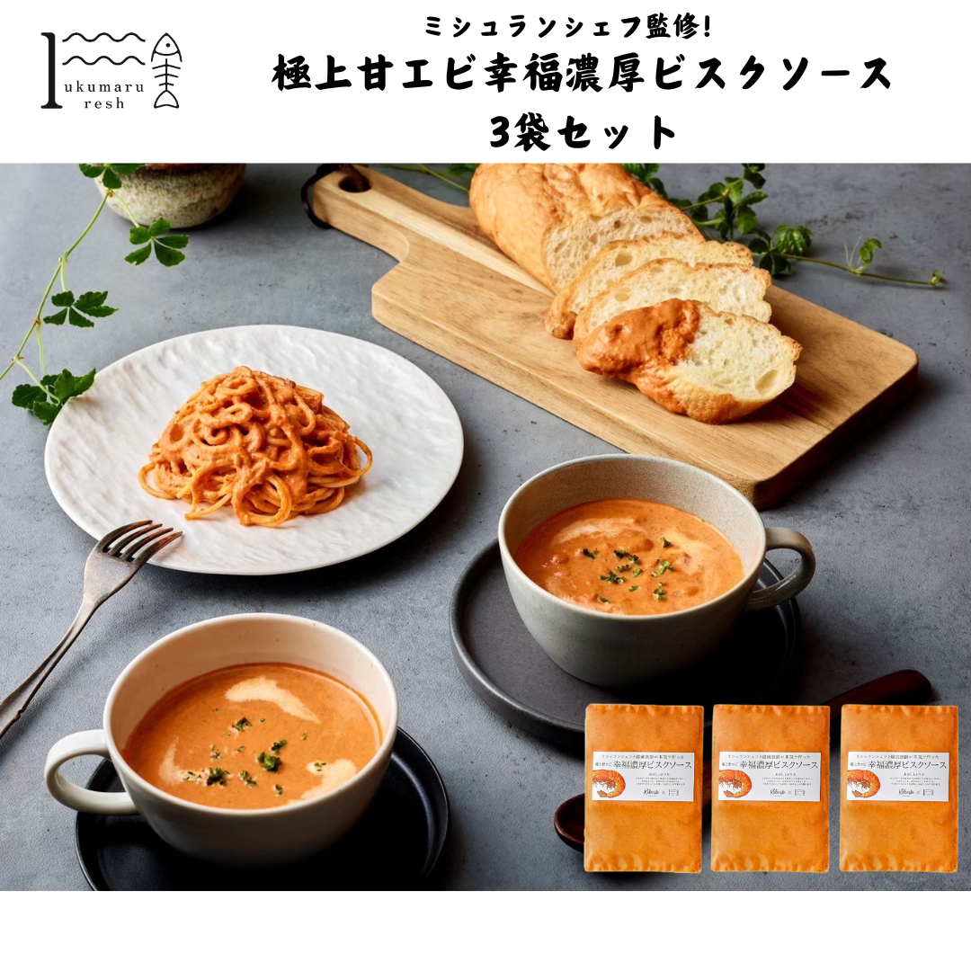 【福井】福丸ふれっしゅ ミシュランシェフ監修 極上甘エビ幸福濃厚ビスクソース3袋セット