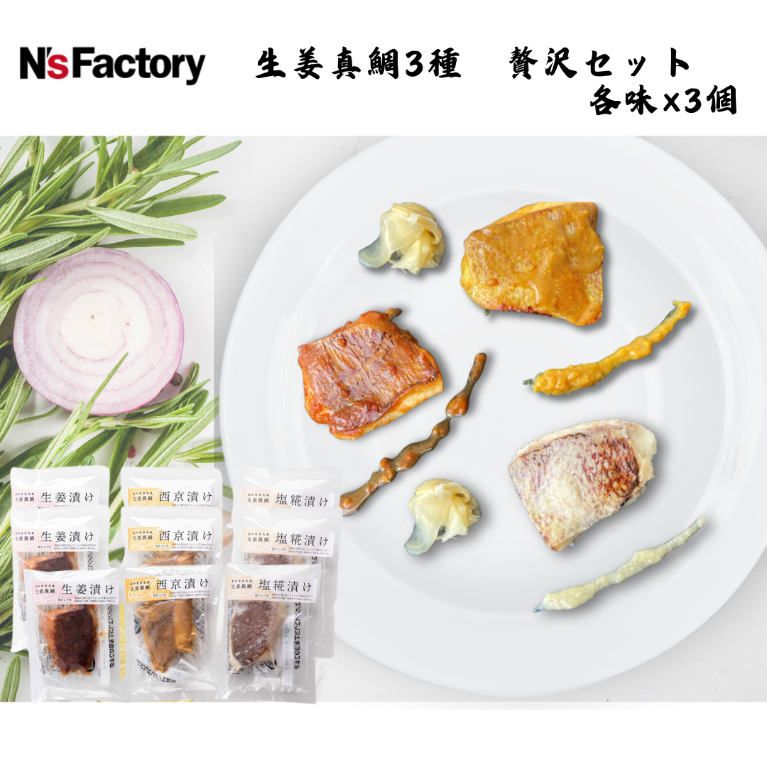 【高知】N`sファクトリー 生姜真鯛3種 贅沢セット 各味×3個